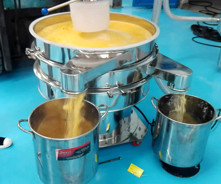 粗砂糖振動(dòng)篩采用YZUL立式振動(dòng)電機(jī)作為激振源,通過振動(dòng)電機(jī)上下兩端的偏心重錘將旋轉(zhuǎn)運(yùn)動(dòng)轉(zhuǎn)變?yōu)樗?、垂直、傾斜的三次元運(yùn)動(dòng),并傳遞到旋振篩的篩面上;物料通過入料口進(jìn)入設(shè)備內(nèi),根據(jù)不同物料篩分要求,物料經(jīng)過1-5層采用不同目數(shù)的金屬編織篩網(wǎng)的篩分層,在這個(gè)過程中,位于各層的篩網(wǎng)下的清網(wǎng)裝置(橡膠彈跳球)通過頻率振動(dòng)不斷撞擊篩網(wǎng),使篩網(wǎng)上層物料能夠順暢的透網(wǎng)篩分,并有效解決了物料堵網(wǎng)問題出現(xiàn),不同目數(shù)的物料通過各層對(duì)應(yīng)目數(shù)的篩網(wǎng)后在各層的出料口排出,終實(shí)現(xiàn)篩選除雜或過濾分級(jí)的目的。