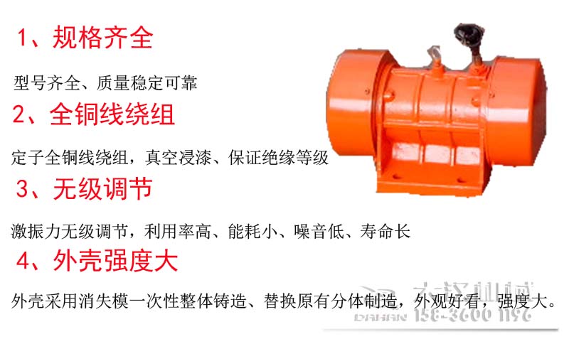 振動篩分機(jī)、振動給料機(jī)、振動落砂機(jī)、振動放礦機(jī)等各種振動機(jī)械的通用激振源,以其優(yōu)良的性能廣泛用于煤炭、冶金、礦山、電力、糧食、化工、鑄造、水泥、港口等行業(yè)。